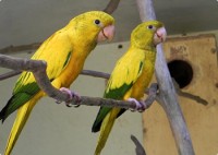 Very Sweet. Loves to cuddle. He is still a young bird and all of his gold feathers have not come in yet. He is a part of our family and we are frantic to get him back.