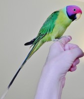 Moe is a friendly bird that knows how to “step up”. He will sit on your hand,arm or shoulder and ride round,but does not like to be touched. His favorite treats are freeze dried Raspberries,millet,cashews,fresh apples and broccoli.