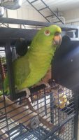 Kumar is a very happy, six year old, spoiled rotten, extremely charismatic, inside flighted yellow napped amazon. He is a very unique and highly intelligent parrot. I taught him how to view every angle of the apartment through mirrors. So he isn’t afraid of his own shadow. He loves to climb on his toys that hang from the ceiling and play catch with me as he giggles!! Kumar is also a survivor because when he was three years old he was attacked by a raccoon and survived after two weeks in the hospital! So, he is very aware of the dangers in the wild!! And because he would go bike riding with me everywhere…he is very familiar with a more than 10 mile radius of the outside environment. So, he knows where home is because he flew away the first time on Cinco De Mayo 2016 and to my greatest unexpected joy Kumar returned on his own five days later unharmed.