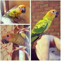 ~8 months old but very friendly and vocal! As she’s young she still has a bit of green mixed with her colouring. She will respond to a few different names such as Chicken and Bubba. Loves apples.