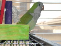 Green Quaker Parrot, just under a year old, friendly, knows a few words like hello, what are you doing, don’t do it, step up and laughter sounds. Loves to be close to his human companions. Greatly missed by his family!!!!