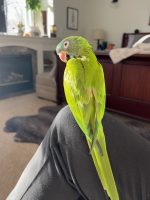 He flew away on July 4 @5:30pm. He was heard in Normandy nature trails between 7:45-8:45pm that night. he was allegedly spotted at the COVE in Normandy park along the water just north on July 6 at 5am and again in three tree point around 11am. He is a strong flyer, loves people and will land on heads or shoulders. He is not fond of hands. He loves chips, cookies or anything you are eating and will often come to you if you have food. He is a good talker and will say TOBY, WHAT’RE YOU DOING, COME HERE, and KISSES. He sounds like a mini macaw when he squakes. He may look old or disheveled right now as he is multing his feathers but he is only four years old. He is posted on lost and found king county, the cove facebook, Nextdoor and other social media spots.