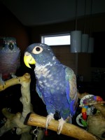 Very tamed, obeys step up command, enjoys food like almonds, apple. Requires medication. Reward for safe return.