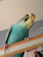 Vary friendly, likes to destroy/pick at things. We originally adopted her after finding her outside (so she’s been in a situation similar to this before). She is mainly blue on her body but her wings are black patterned with white, her face is yellow and has 3 dots on each side of the face.