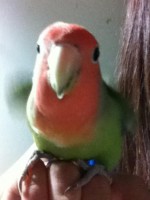 He likes to stand on people’s shoulder and head, he does not afraid of human beings and he lets people to touch it, especially its head.
