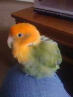 Lovebird: orange head, green body. Answers to “Sprout.” Friendly will likely come if called. Escaped from our home on Stromberg Ave, in Arcata Saturday (7/16) or Sunday (7/17). If you see him, call immediately: 760-845-6228 or 707-499-6779. We love him and want to get him home safely, we need your help. Reward!