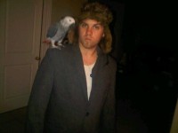 My families beloved bird, Pocho, has been lost as of 8/23/11 from the Escondido Country Club! We tried to retrieve him to no avail, and due to some advice, I have turned to post here (I believe this has been crossposted here on 911parrotalert, but we felt it necessary to post as well, thank you volunteer!) Poncho will return your call if you whistle to him. The fuzzy picture above shows him with my brother. Poncho is grey, with a white face, and red tail. He is banded. We miss him very much. PLEASE help us find him again, our home is so empty without our little guy.