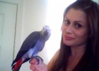 She is young BABY AFRICAN GREY congo parrot ( RED TAIL ) .