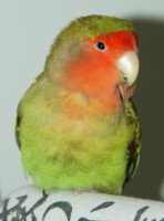 Green, peach-faced lovebird named Molly. She love people and is very affectionate. She will fly to people for affection and food. We’ve had her since she hatched 7.5 years and miss her very much. Please call us if you see her.