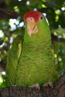 HE IS A RED-CROWNED AMAZON PARROT/MEXICAN AMAZON BIRD. HAVE HAD HIM FOR SEVERAL YEARS NOW, BASICALLY ANOTHER MEMBER OF THE FAMILY. HE IS A ALL LIME GREEN BIRD WITH ABOUT A QUARTER SIZED RED HEAD WITH SMALL STREAKS OF BLUE ON BOTH SIDES OF HIS HEAD & A YELLOW BEAK. DOESNT TALK VERY MUCH. WE ARE DEVASTATED THAT HE IS GONE AND WE ARE DESPERATE TO BRING HIM BACK HOME, HE WAS LAST SEEN IN CAMPUS PARK AREA, IF YOU HAVE ANY INFORMATION ABOUT HIM PLEASE CONTACT ME ASAP (805) 368-3761
