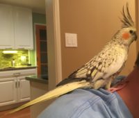 Female pearl, 18 months old, large for a cockatiel, very friendly. Will probably approach people.