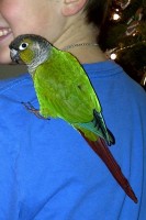He is a fiesty male, that is extremely bonded with me. I have blonde hair so he may be inclined to warm up to another blonde haired woman. He loves apples, and isin’t typically afraid of people, just sometimes aggressive if he dosen’t want to hang out with you. He is Four years old. He is in full flight.