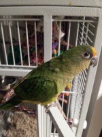 She is able to speak a few words, responds when called and able to say her name. She loves people and would come up on your finger if told to step-up.
