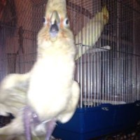 My bird few away on may 9 she’s yellow color with a red on her cheek . We want her back she’s a friendly bird . Reward is 150 dollars . On the picture the little bird not the big one . I have no pics of her only this one but you can see her . Pls contact DORA 778-869-0247 she’s on the Westwood platoe area in coquitlam .