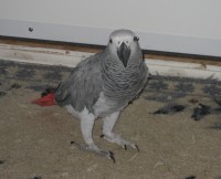 Presley is an African Grey Parrot. He is a beloved family pet of ours. His wings were not clipped, so he has dark grey wing feathers and his body is light grey. His head feathers are a lighter grey and his tail feathers are bright red. He flew out of our house on July 8, 2012 in the foothill/tabour area of Prince George, BC, Canada. We really need to find him! He is missed dearly by our family. Please help us find him. He is talkative and will make knocking, ringing, coughing, barking, sneezing, and even farting noises! He calls for Mom, David, Pebbles, and Sierra. In addition, he says ‘want some’, Pebbles needs to go out and pee, Hello, Bye, making bomb dropping sounds, various telephone calls, plus many other comments. He is very attached to David and will call for him daily. If you hear any calls like these in your neighbourhood or if you see him or know of someone who has found a parrot recently, please, please call 250-563-2755 or 250-649-9623 ask for David or Evelena. You can also contact the Prince George or Quesnel SPCA or animal control to help catch him.