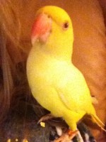 LOST Lutino Indian Ringneck. Her name is Sunny. She’s approx. 2 years old. Was lost on July 11th. She is skittish and may not approach strangers. If you have her or spotted her please contact me as soon as possible. Reward if found.