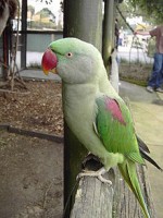 We contacted the owner about a found ringneck and he tols us Sunny has been found.Our parrot Sunny flew away Wednesday June 20 2012, she was last seen around Williams Parkway and Dixie area. We are not sure where she is now but if you do see her or hear her first distinct voice please call a.s.a.p.. A reward will be given if she is returned. She is lime green with a reddish orange beak and also has a red spot on her wings. Please call any time at 905 458 7922 or 416-553-8019
