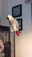 RUBY says words such as: hello, ruby, peekaboo, wow, “pichuu”, “waheguru”. She usually imitates a human whistling and loves peanuts. She loves drinking warm water, and eating warm food. She is wearing a band, unfortunately I don’t know the entire number on it but I do know the beginning so if found, I can supply you with the first few letters. Also, she prefers females over males and can bite if scared. Overall, she is a very sweet bird and loves to play “catch” with her beak with a small ball