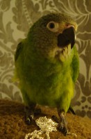 Listens to Flash, Baby, or Birdy. Lost on July 18, 2012 early evening. Grey head, white around the eyes, lime green all over with a bright yellow green stomach. Very friendly. He is VERY MISSED. If you have any information or have spotted him anywhere please give us a call at 416 917 2548. REWARD will be offered. Lost around Centre and Blackthorn intersection and Blackthorn and Camberley.