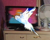 BABY BLUE & WHITE BUDGEE. KNOWS HIS NAME: “MAUWI” HAND TRAINED! – his wings are not clipped. LOST March 13th 2012 around 9am (between King Street & Queenston Road, Glendale High School area. Please email me OR CALL 905 928 9033 / 905 560 7712