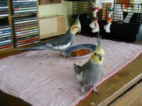 Male cockatiel. May respond to name “Bubbaloo”, as well as wolf-whistles, whistling “dada-da-da da DAAAH…(Charge)” or the theme from “The Andy Griffith Show”.