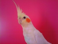 He is a male cockatiel that screams, he has bright orange cheeks, and has a mohawk, he has yellow feathers and his name is Poko