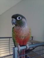 A green cheeked female conure has been reported lost in Laval QC, in old Ste-Rose area, her name is Kalie.