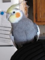 Normal grey cockatiel, banded. Responds to his name and to kissing sounds.