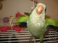 A green quaker has been reported lost in Ste-Julienne QC, Quinn and 125 road. The bird has a leg band, her name is Lola.