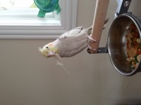 Very friendly, will step up to finger. Some missing tail feathers. Loved by 3 heartbroken little boys!