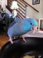 Sammi is Sky blue Parrotlet. He is the size of a parkeet. We are offering a $50 dollar reward if he sighted and still there when we arrive. If Sammi is caught by us when we arrive (or you catch him) and he is UNINJURED, we will pay you $200. CALL OR EMAIL! THANK YOU SO MUCH! He is very loved and missed!
