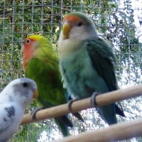 Both of these little darlings escaped from their cage on Friday afternoon. Rudy, (foreground) is tame, and will no doubt land on someones shoulder if he has a chance. Scarlet is less friendly, but will stay near Rudy. If found or spotted please call Steve – 303.916.2303