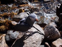 She is very sweet and friendly. She should come right on your hand if you see her. Especially if enticed by food or drink (especially drinks in an aluminum can). She is about ten inches tall and all grey with a red tail. She does not squawk, but makes various high pitched whistles and babbles words. She may say ‘night night’ in the evening. She also likes to tap on walls and windows with her beak. She tends to be either high up or hiding underneath things. The animal shelter and animal control in Steamboat Springs has my contact information. She was lost near Pine St between 4th and 5th.