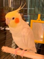 He’s a yellow cockatiel named Ary. He is very vocal. He has red circles on his cheeks. His wings are not clipped so if you find him please cover his wings until he’s somewhere indoors, give him some water. He was lost in Clearwater , Cypress Bend area. You can contact me at 727-417-0196 if you find him.