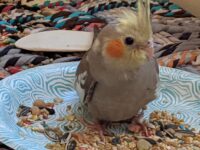 She is mostly grey with some yellow in her feathers and head. She responds to contact calls (whistles), “baby bird” or “precious”. She is a hand-fed baby, so is very sociable. I am worried sick about her. Please contact me if found.