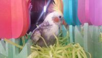 Pink feet, Is grey, light grey and yellow, spotted body as pictured. Hand reared is about 2 months old. Loves millet and bar treats also loves her/his food in a container. Has siblings so he/she might respond to other cockatiels, tried doing this with her parents, but she never showed. I live borderline to Laguna Niguel, Laguna Hills, and Aliso Viejo. Most likely will not respond to her name since he hasn’t gotten used to it.