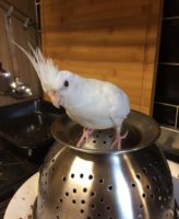 extremely clingy and anxious, will fly to heads and beg for food, very vulnerable and a weak flyer. we think that ‘he’ is actually a ‘she’ so may display more female characteristics than male.