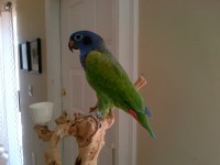 Luna is a female (DNA test) Blue Headed Pionus. She escaped from our house in the Aviara HOA complex In Boca Raton FL 33428 (area code) on Wednesday June 5 2013. She is approximately the size of a pigeon and her colors are clear in the attached picture. She doesn’t say any words as most Pionus but she is the sweetest thing… Has never bitten anyone and loves when you scratch her head.