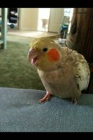 Cinnamon Pearl (peppered grey on yellow background), very friendly, great companion, very tame, but very good flyer. Will likely fly onto your shoulder when she gets hungry. She flew out of our front door June 7 in Bradenton FL north toward the IMG campus (at least at first as far as we saw). She was strongly bonded with us, but lost her mate 5 months ago, and I feel with Spring mating season upon us she may have had the need to roam. She probably got lost quickly in our complex neighborhood, and we are so worried about her safety. We are offering a reward. She has 4 children 1-2 years old she has left behind and I am also worried she is despondent, scared and hungry. Please call me at 941-348-7008 if you see her. Reward offered.
