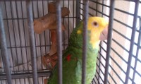 Pancho is a full grown male Double Yellow Headed Amazon parrot. He was handraised and is very attached to our family. He must be very frightened as he has never been away from his house before.