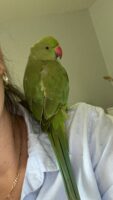 Hello everyone! I know this is a long shot, but my parrot flew out of the house Wednesday night around 6:30pm. I’m desperate to find him and will offer an award! He’s a green Indian ringneck with a yellow spot on his head. His name is Zazu and he loves bananas and any kind of food really even though we try to keep him on a specific diet. He learned how to give besos (kisses in Spanish) and will do it for food. He is super sweet but very timid with others unless you have food and move slow. We live in Jacksonville Florida off of Atlantic Blvd in sandalwood, Sutton lakes by a strip off trees which is where he flew into. Indian ring necks have a very distinct call different from other native birds in Florida.if you happen to hear or see anything please give me a call at 9042260850. I’ve posted on several places and made some calls to the vets nearby.