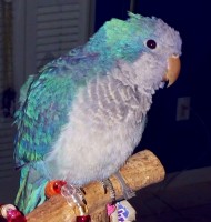 Male blue quaker parrot about a year old band starts with ATB XX XXX. Please help me find him!