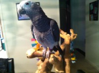 Loves corn. Hates sunflower seeds. Says “hello” “Jemma” “Ope come here”. Likes being scratched on top of her head. Purple band.