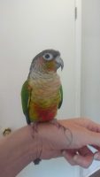 Skittle is a typical GCC- green back and wings, red tail, red, yellow and white chest, colorful cheeks, and dark gray head. Skittle has a tiny back toe, a bump in front of his right eye from ingrown feather. Skittle loves scritchies, fresh fruit and seeds, and my husband. I forgot he was on my shoulder while I was doing chores. When I stepped outside around 1pm, he shot off. My husband tried their call back, but I’m afraid Skittle was too far already or just too terrified to respond. My husband is devastated and I am desperate to find Skittle before a predator does or it gets even colder. Please, If you spot him or know where he is, contact me. Thank you.