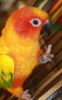 Kai is 3 years old and has a long life ahead. He has a claw sticking straight up like he is flipping you off, we got him that way. He likes dry mangos and chips/crackers. He loves music and is not to fond of men or children. We have small dogs so he is use to them but is not friendly with them. He squawks super loud when he trys to get attention and love to snuggle.