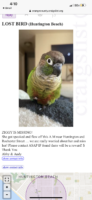 Shes very tame and will hop in your finger or shoulder! CASH reward if found!