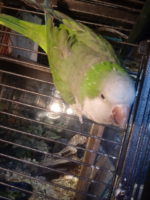 George is a sweet Quaker Parrot Who Loves to Bask on your shoulder and travel along with you everywhere you go! He laughs giggles and carries on conversation with himself!