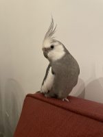 Dislikes water/rain, responds to name “Eva”, can whistle and say his name. Friendly.