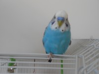 His name is Dash, although he probably won’t respond to it. He is a male light blue budgerigar.