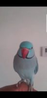 Indian Ringneck Parrot. Named Blu. Male can say a few words. Knows his name but does not like to be petted. Will come to his name and sit on your arm or shoulder or head. Loves Millet Spray or his “numnums” as we call them. Missing from Fox’s RV and Apartments in Biloxi on Beauvoir Rd